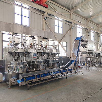 Bu, kaplama, kavurma, baharatlama, kurutma ve soğutma için tam otomatik bir üretim hattıdır. Otomatik kaplama makinesi, geleneksel manuel kaplamanın yerini alır. Bu hat sadece verimliliği artırmakla kalmaz, aynı zamanda nihai ürünlerin kalitesini de garanti eder. Otomatik süreç, her bir yer fıstığı veya kaju fıstığının eşit şekilde kaplanmasını sağlayarak en yüksek tat ve doku standartlarını korur. Ayrıca, makinenin tasarımı atıkları en aza indirir ve malzemelerin kullanımını optimize eder, bu da onu müşterimiz için uygun maliyetli bir çözüm haline getirir.